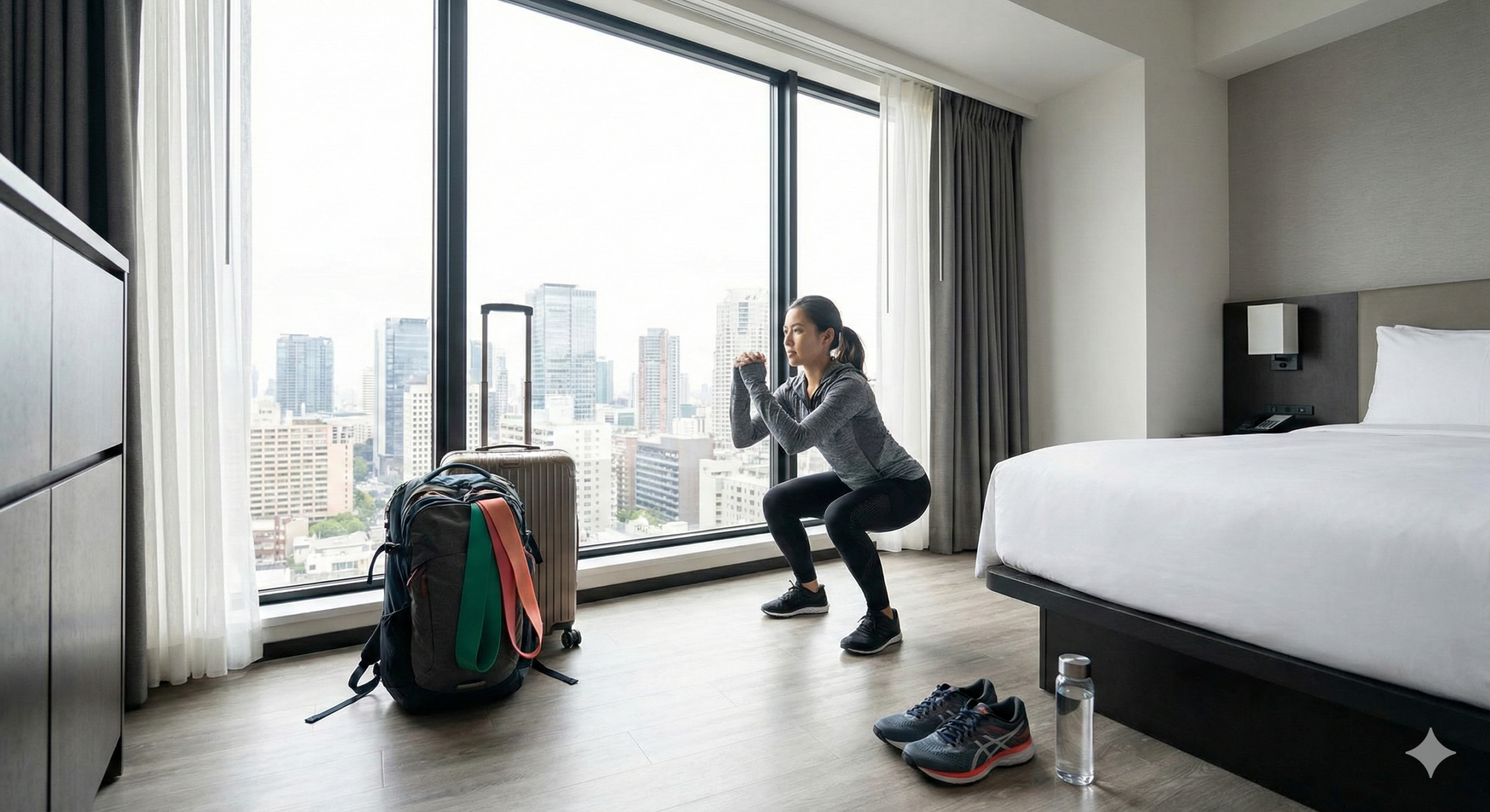 You don’t need a squat rack to stay fit. You need discipline and a plan. The “perfect” workout is the one you actually do. Pack your bands, set your alarm, and treat your health with the same professional respect you treat your career.