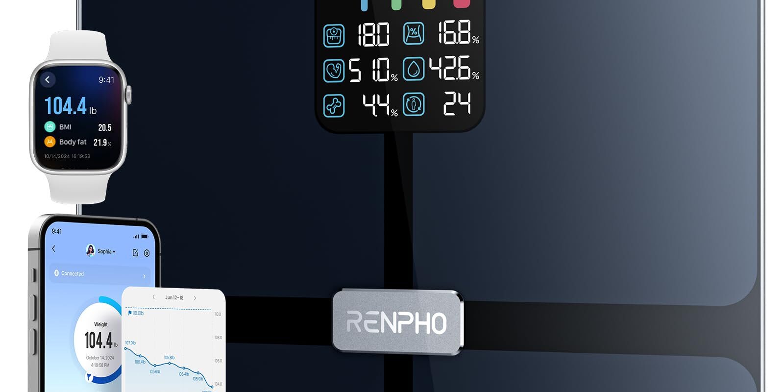 - Bluetooth connectivity to sync data with the RENPHO app on iOS and Android